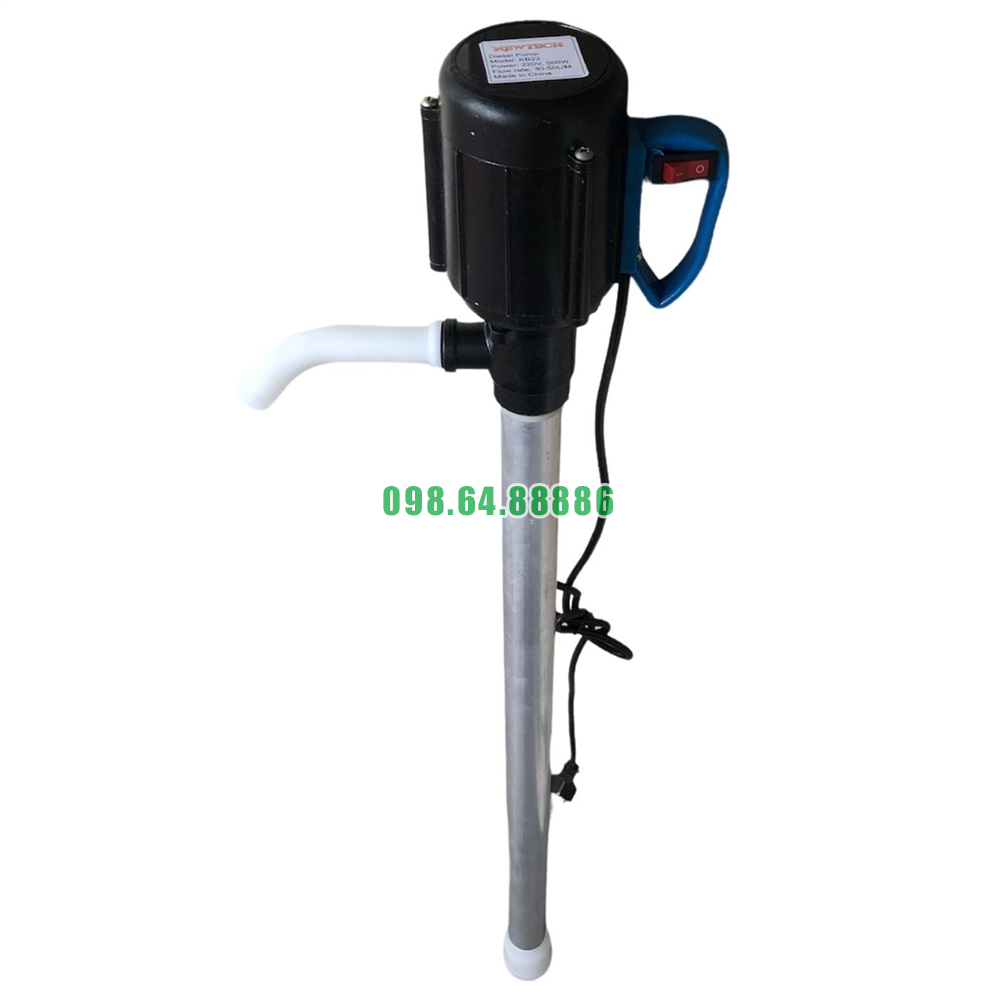 Sau khi kiểm tra, người dùng đặt máy bơm vào thùng phuy 200L. Vỏ nhôm của máy có thiết kế giúp dễ dàng đặt máy thẳng đứng mà không gặp phải sự cố. Đảm bảo rằng ống bơm dài 900mm tiếp cận hết phần chất lỏng trong thùng mà không bị cản trở.