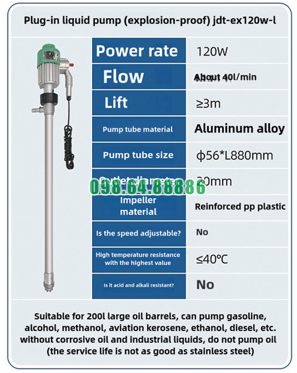 Máy bơm chất lỏng cầm tay chống cháy nổ JDT-EX120W-L có cấp độ bảo vệ an toàn cao