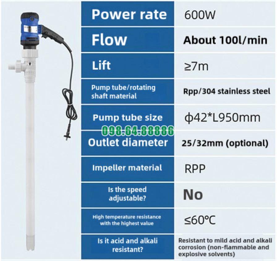 Bơm điện chuyên dụng cho dung môi RPP/Inox JDT-600W