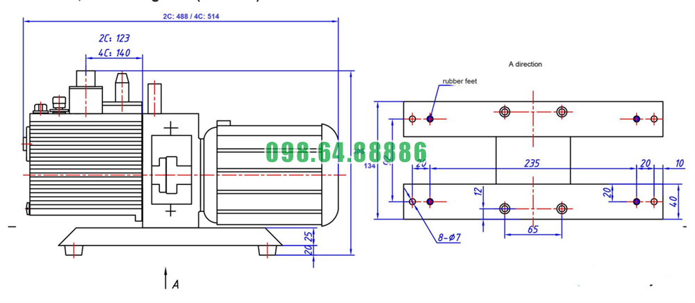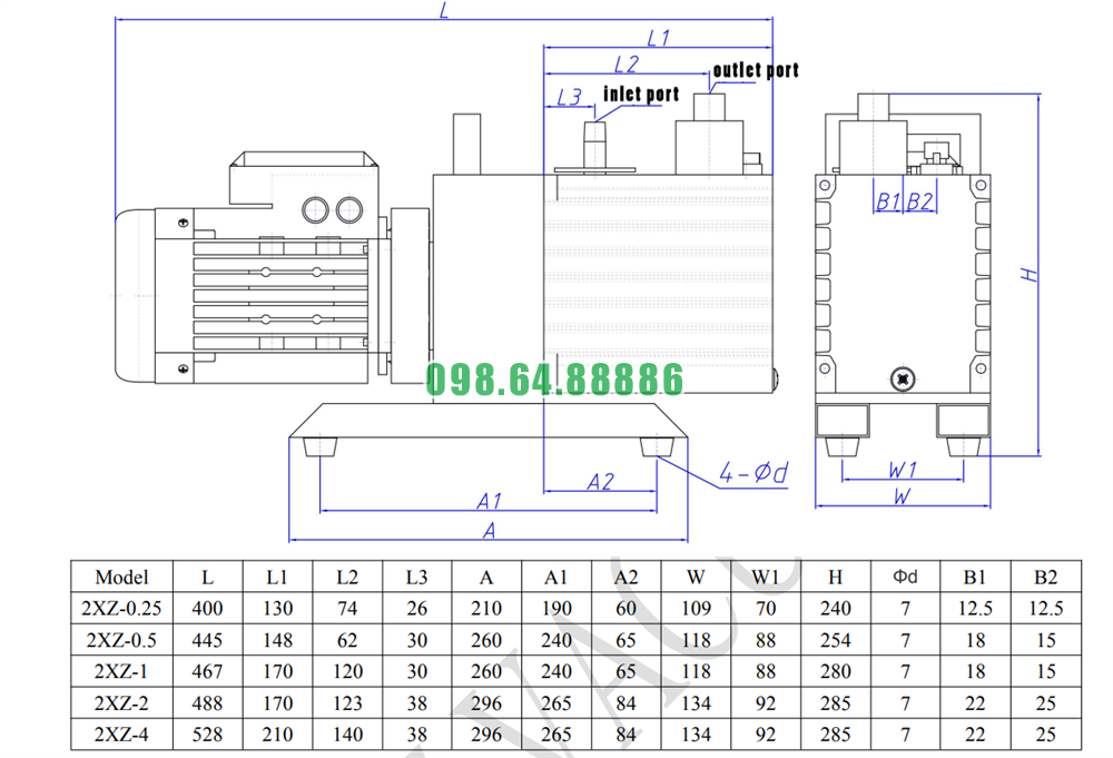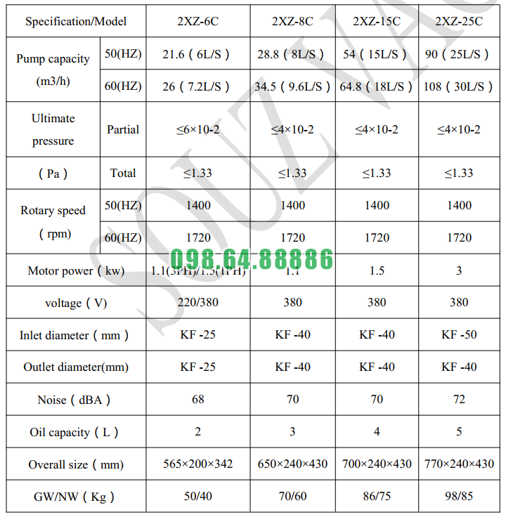 Bơm hút chân không 2XZ-6C công suất 1.1 kW