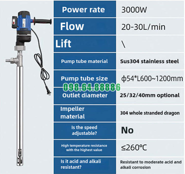 Trong số các dòng bơm hút thùng phuy công nghiệp hiện nay, Bơm nhúng thùng phuy JDT-3000W-JLG260 nổi bật và ngày càng được nhiều doanh nghiệp lựa chọn. Việc Bơm nhúng thùng phuy JDT-3000W-JLG260 được ưa chuộng hơn không phải ngẫu nhiên, mà đến từ sự kết hợp giữa thiết kế, hiệu suất và tính ứng dụng thực tế.