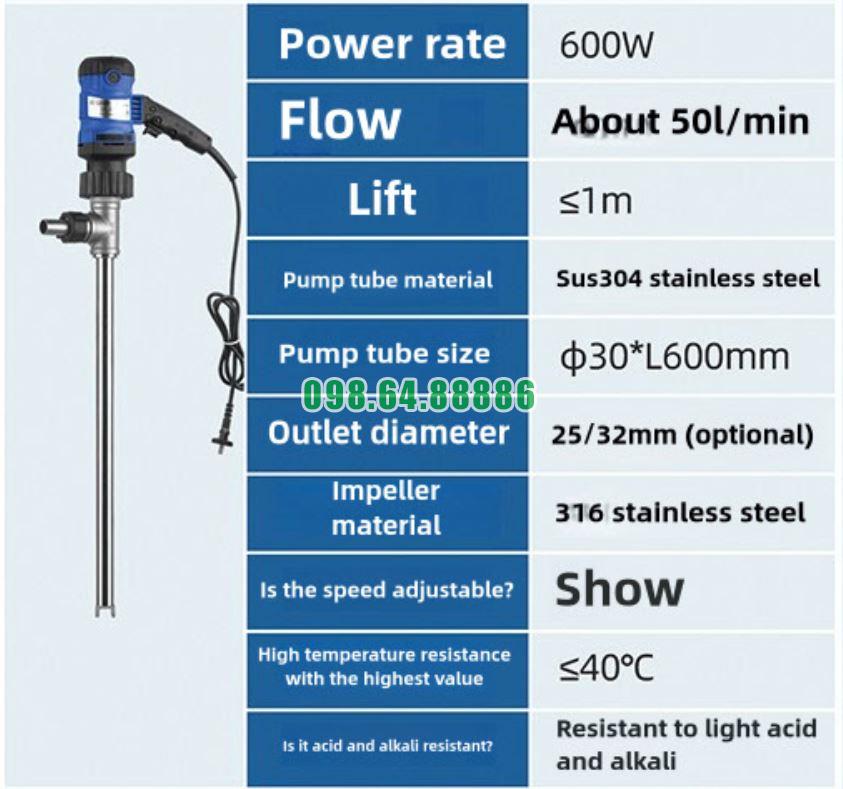 Bơm thùng phuy inox model JDT-600W-30SUS304
