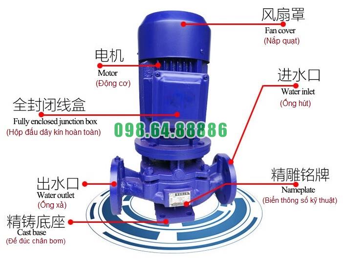 Máy bơm ly tâm trục đứng inline, bơm cấp nước trục đứng, inline ISG65-250A, IRG65-250A 11kw