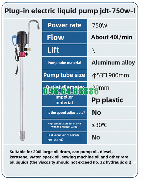Máy bơm điện hút thùng phuy vỏ nhôm JDT-750W-L được thiết kế để thực hiện công việc bơm chất lỏng từ thùng phuy 200L sang các bồn chứa khác một cách hiệu quả, ổn định và an toàn. Chu trình làm việc lý tưởng của máy bơm này bao gồm các bước sau, đảm bảo rằng máy hoạt động với hiệu suất tối ưu và độ bền cao.